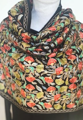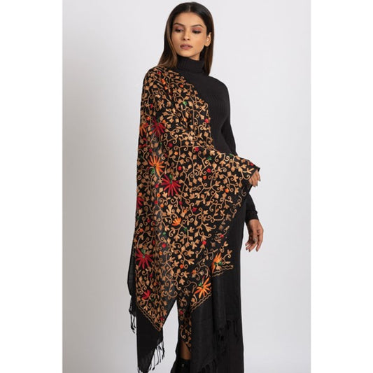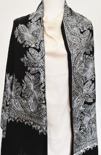 Classically Beautiful, Black Shawl with Intricate Embroidery