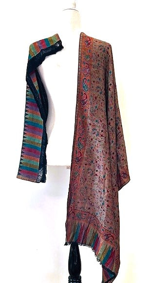 Kamal Embroidered Shawl in Black, Gold and Reds