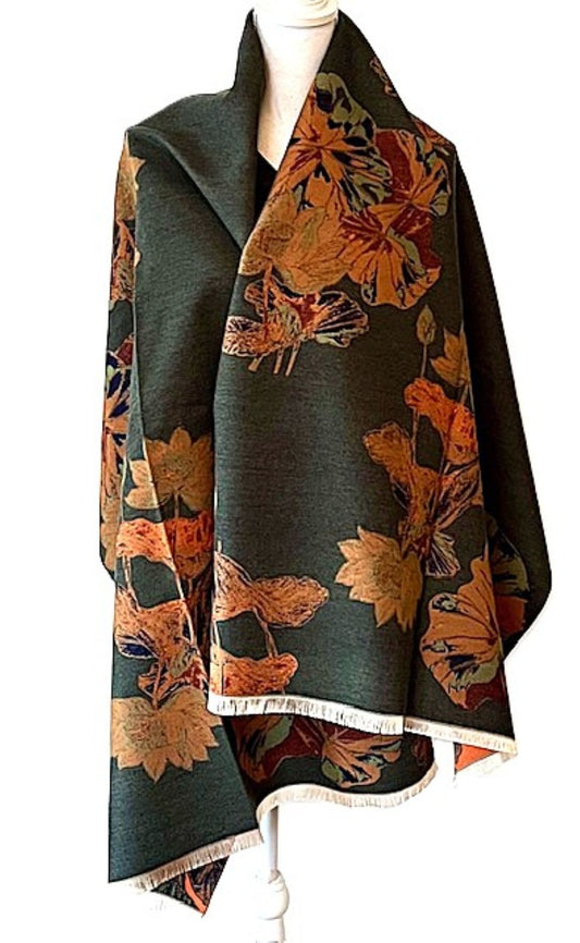 Orange Green Blossom Reversible Wrap – Artisan Shawl
