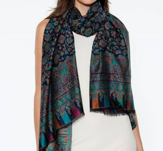 Jamevar Classic Lightweight Jewel Tone Shawl, Blue Multi