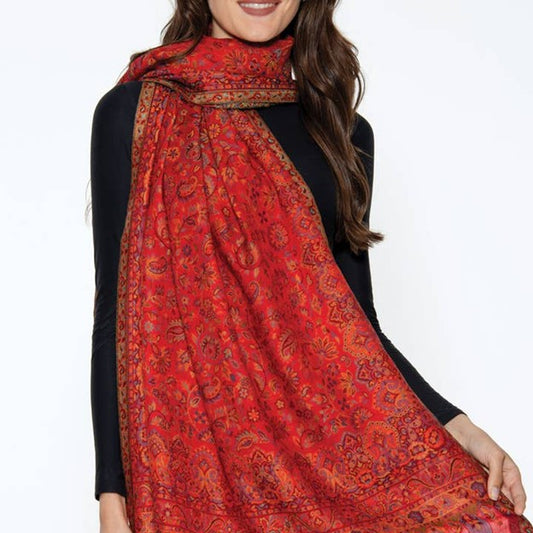 Jamevar Classic Lightweight Jewel Tone Shawl, Red Multi