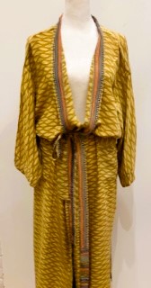 Luxury Mixed Print Silk Kimono Duster is Sophisticated (Mustard)