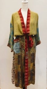 Luxury Mixed Print Silk Kimono Duster is Sophisticated (Gold)