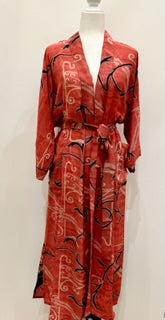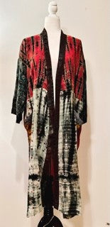 Luxury Mixed Print Silk Kimono Duster is Sophisticated (Tie Dye Red)