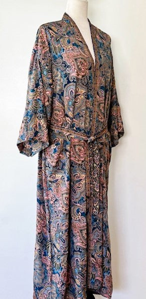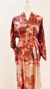 Luxury Rich Silk Print Kimono Duster Dress is Elegant