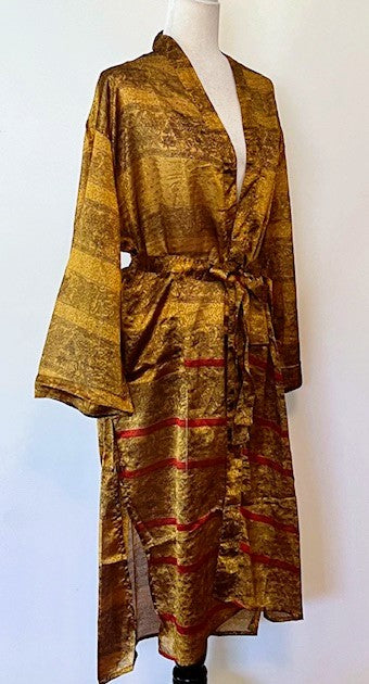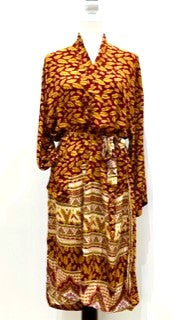 Luxury Rich Silk Print Kimono Duster Dress is Sophisticated (Bronze)