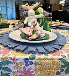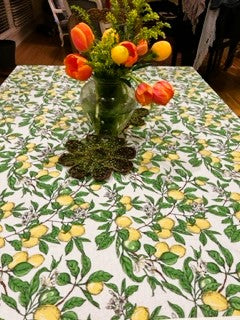 Colorful April Flowers Hand Screen Printed Table Cloth (60x90). (April)