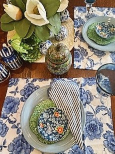 Blue and White Floral Placemat and Napkin Sets. 4 Per Set Beautiful (Megan)