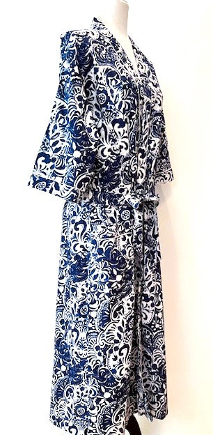 Kimono Cotton Robe Is A Great Coverup or Over Jacket. (Navy and White)