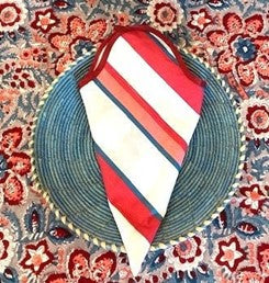 Dinner Napkin Set In A Complex Print With A Contrasting Border (Red and Navy)