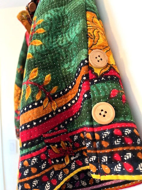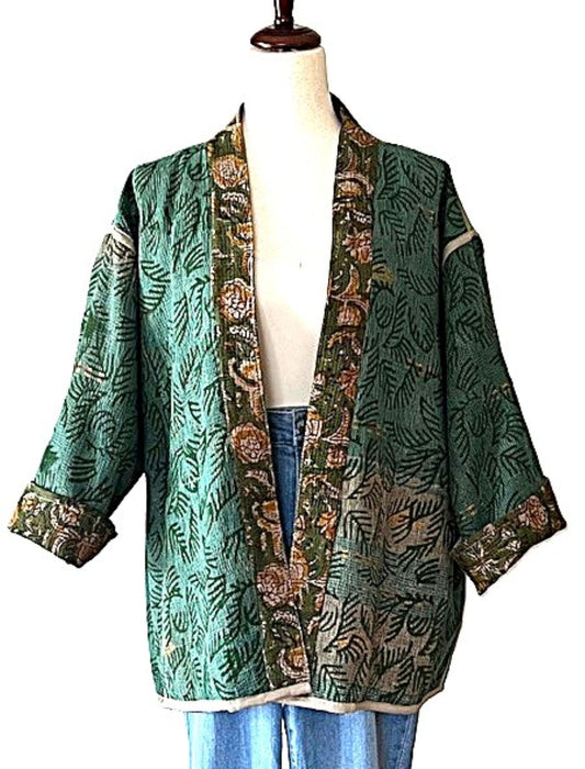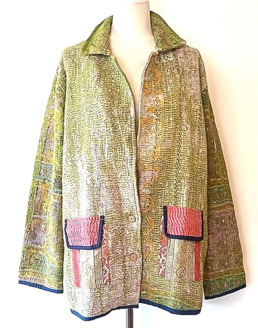 Specialty Collection: Short Jacket Fully Reversible. Kantha Quilted. (Olive)