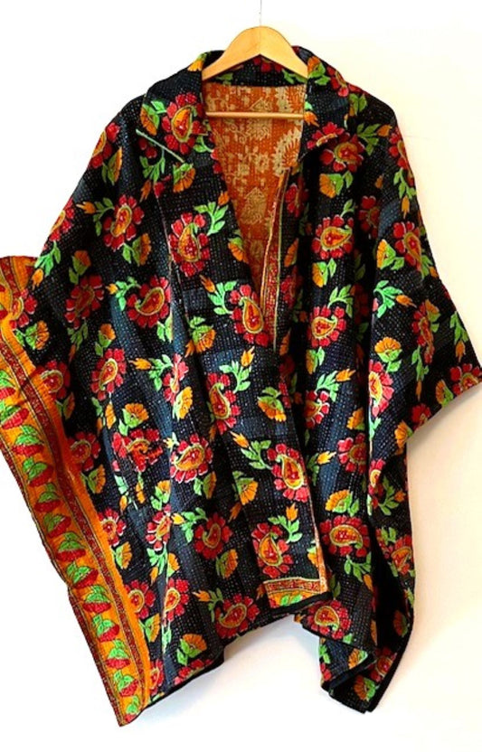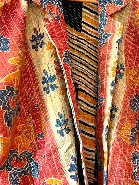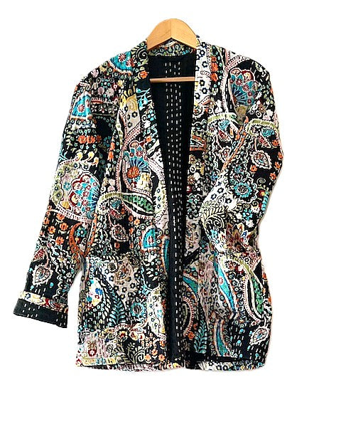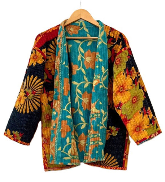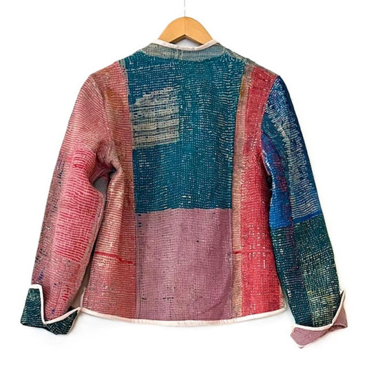 Fully Reversible Short Quilted Jacket With Kantha Stitching. Beautiful Color.