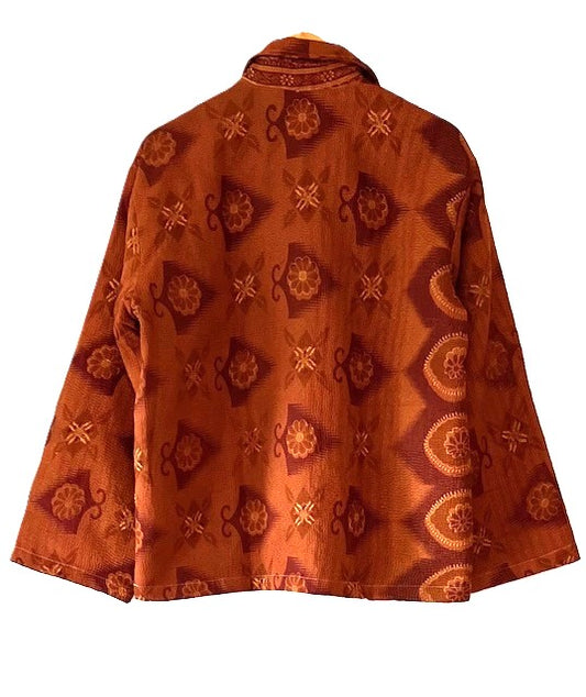 Jacket, Fully Reversible Short Quilted With Kantha Stitching. (Bronze, Red)