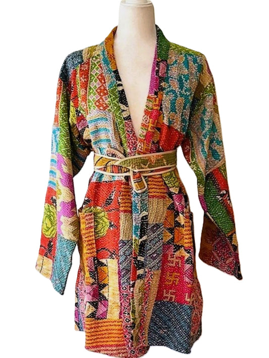 Jacket: Fully Reversible Short Quilted With Kantha Stitching. Fashion Piece.