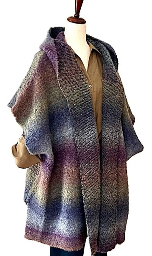 Jacket: Hooded Kimono Multicolor Gradient Blends Of Blues. Comfy.