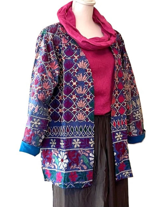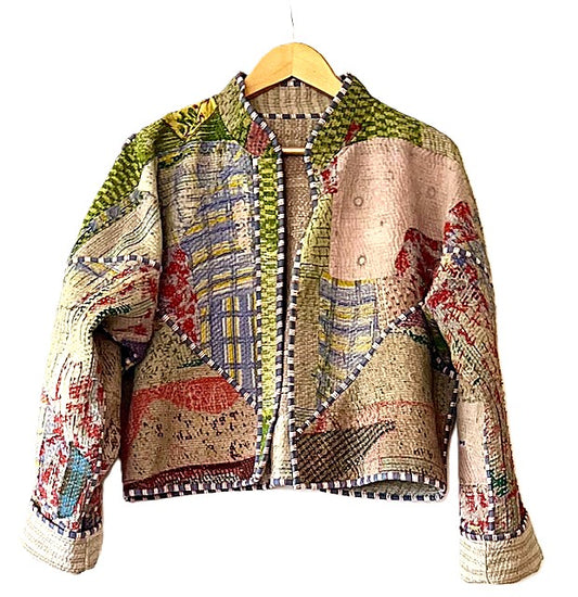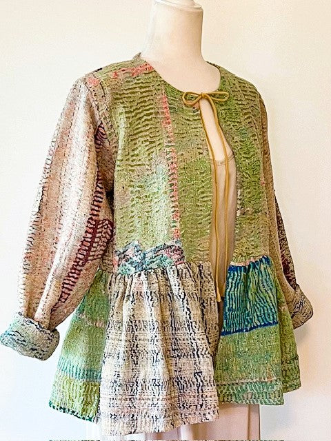 Wearable Art: Handmade Kantha Stitched Multi ColoredJacket. Swing Cut, Pastel