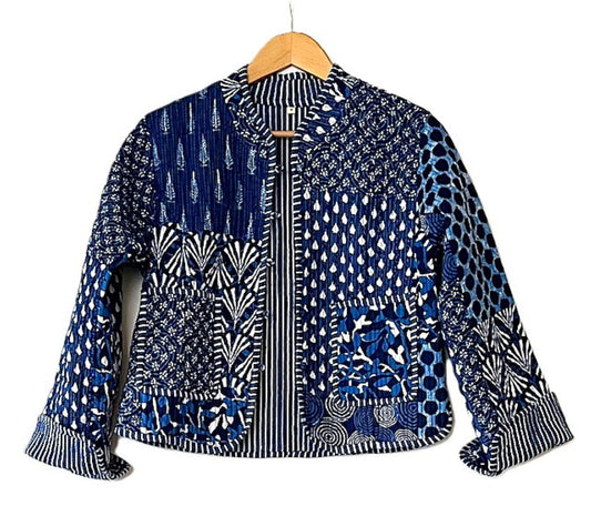 Short Cotton Quilted Handmade Jacket, Fully Reversible is Fresh and New (Light Blue)