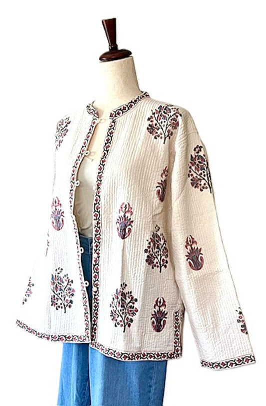 Luxe Cotton Quilted Women's Jacket, Fully Reversible (Cream Floral)