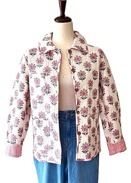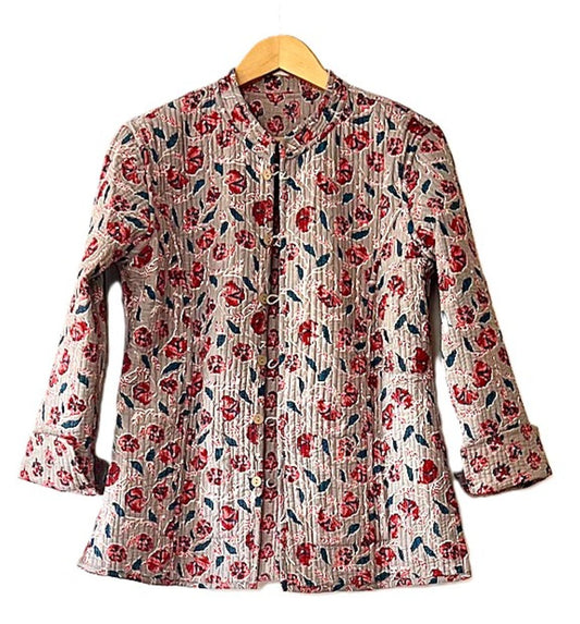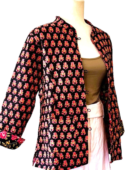 Luxe Cotton Quilted Women's Jacket, Fully Reversible (Rose Floral)