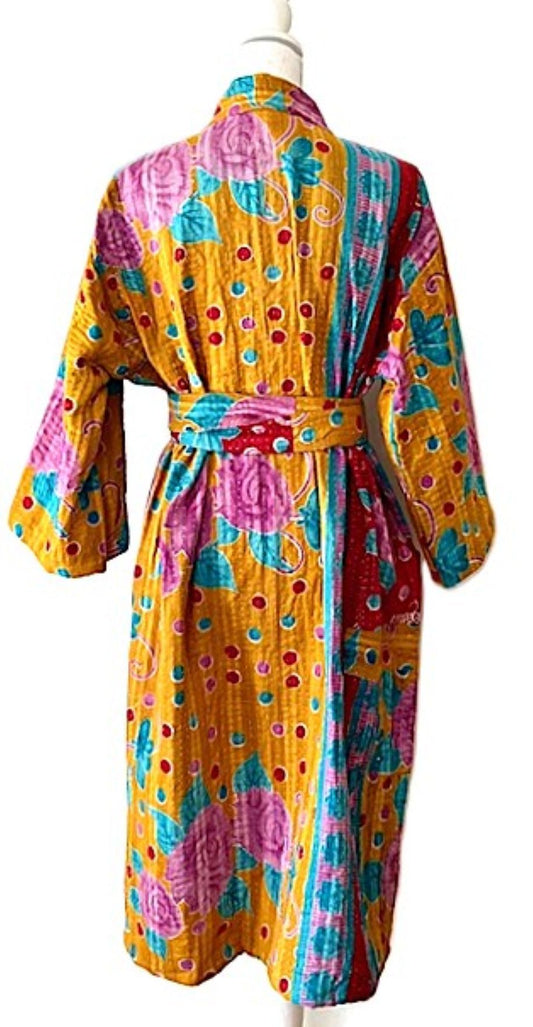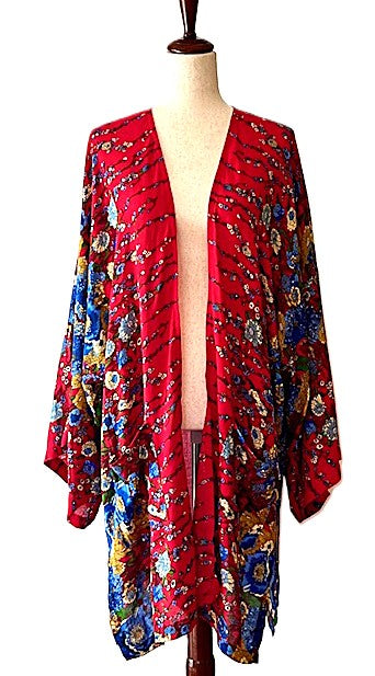 Luxurious Silk Kimono Duster. Stylish. (Royal Daisy)