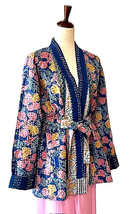 Jacket, Handmade Vintage Kantha Quilted (Colorful)