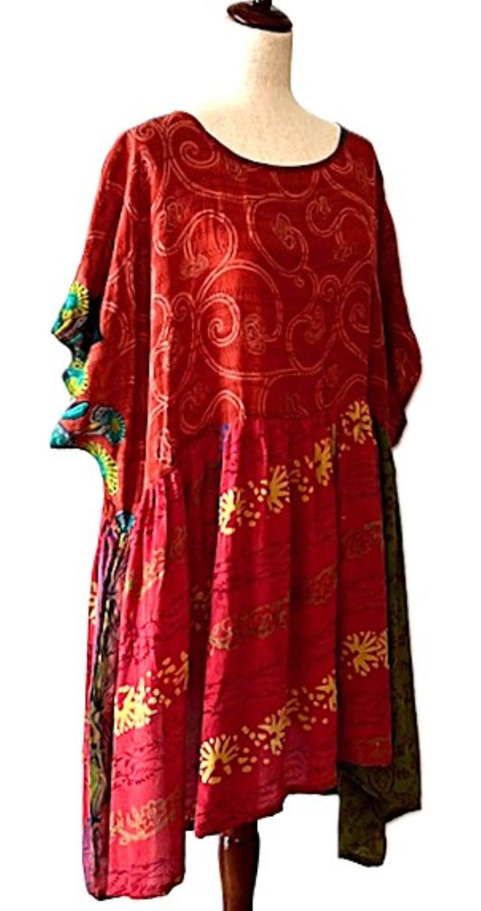 Luxurious Mixed Print Silk Kimono Duster. (Patchwork)