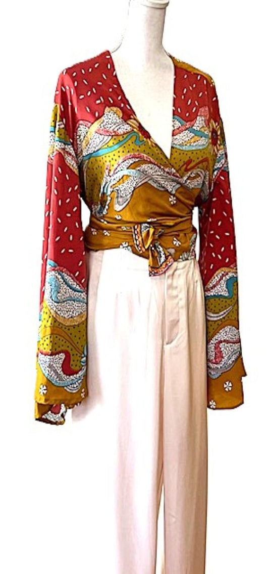 Striking Silk Wrap Crop Tops. Available 3 Different Prints.