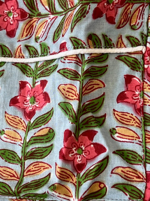 Beautiful Fresh Floral Block Print Cotton Short Dress (Pink)