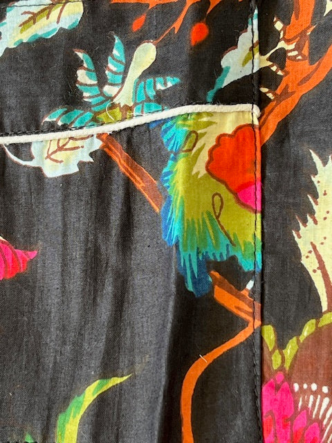 Long Silk Kimono Duster, Dramatic Mixed Prints.(Avocado and Aqua)