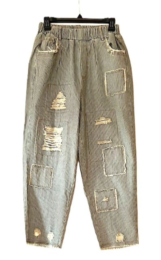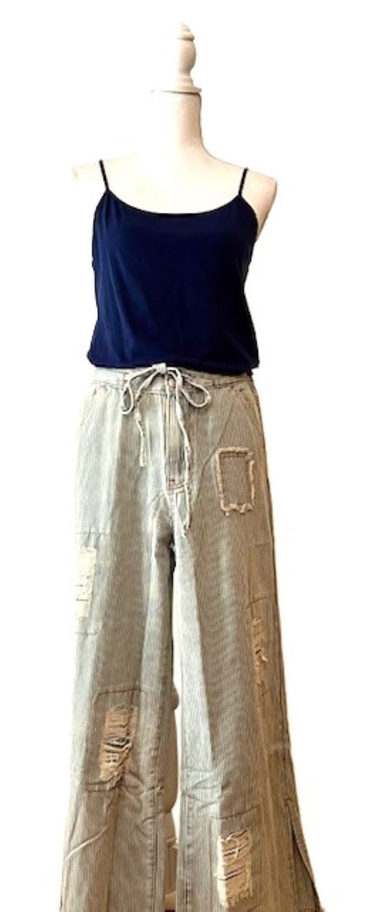 Distressed, Waist Stripe Denim Wide Pants. Best Seller.