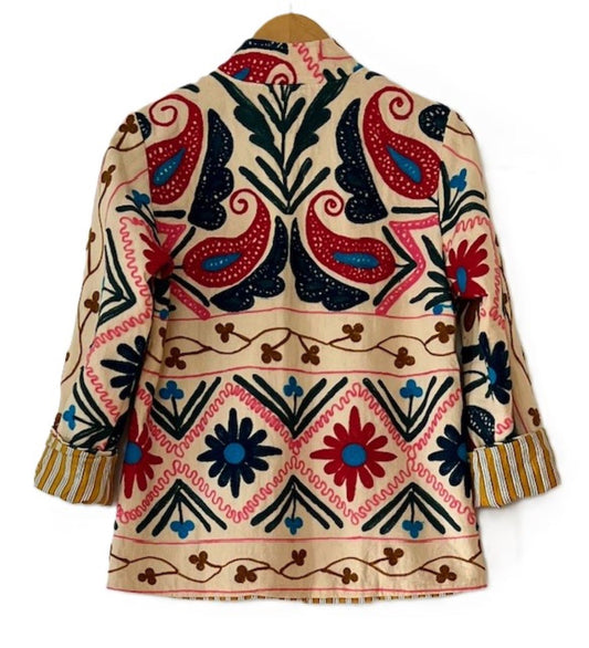 Short Box Cut Suzani Hand Embroidered Reversible Boho Jacket, Wild West