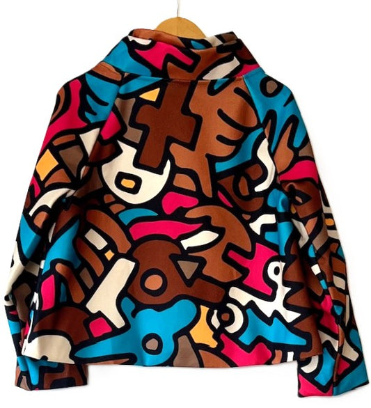 Lively Short Designer Jacket Direct From Europe. (Red Abstract)