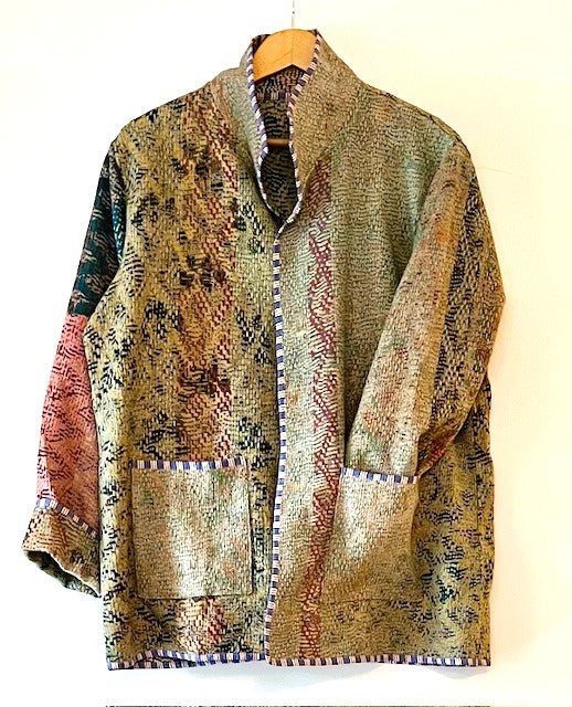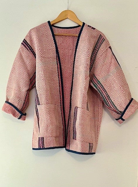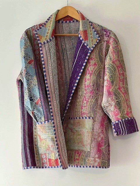 Handmade Indian Vintage Cotton Kantha Jacket, Reversible