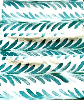 Luxe Dinner Napkins, Block Printed In Turquoise Blue Fern Print