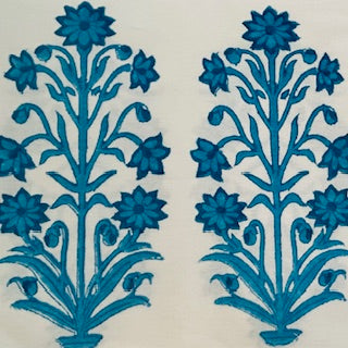 Luxe Dinner Napkins, Bloom Block Printed In Aqua. Striking