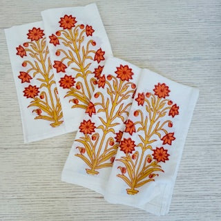 Luxe Dinner Napkins, Bloom Block Printed In Orange. Striking