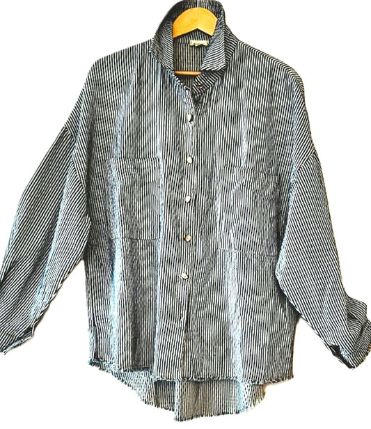Long Sleeve Stripe Pattern Denim Over Shirt, The New Basic We Love.