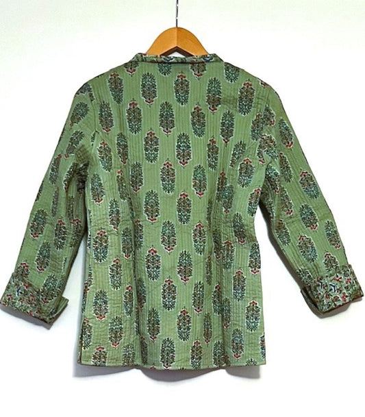Luxe Cotton Quilted Womens Jacket, Fully Reversible (Green)