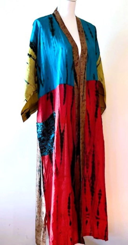 Luxury Silk Kimono Duster Dress; Perfect Thanksgiving Print