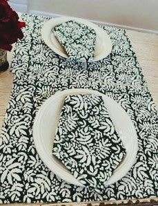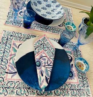 Hand Block Floral Printed Placemats and Napkins ( Sets of 6) Floral Blossom