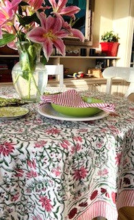 Hand Block Floral Printed Tableclooth and Napkins ( Sets of 6)