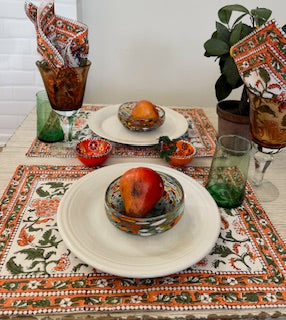 Beautiful Indian Block Printed 100% Cotton Harvest Placemats & Napkins. Sold In Sets of 4
