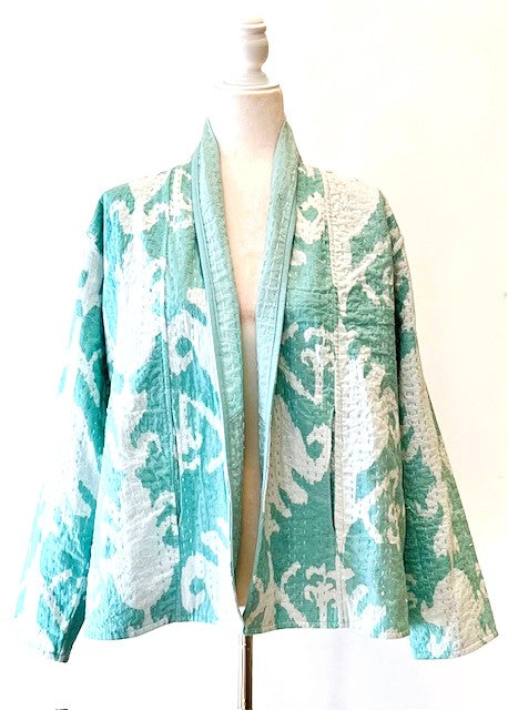 Beautiful Handmade KHAMBADIYA Kantha Short Silk Jacket (Classic Print)