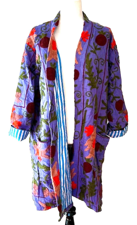 Stroller Length Suzani Jacket Available In Two Colors. Stripe Lining Is Sophisticated
