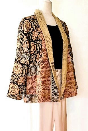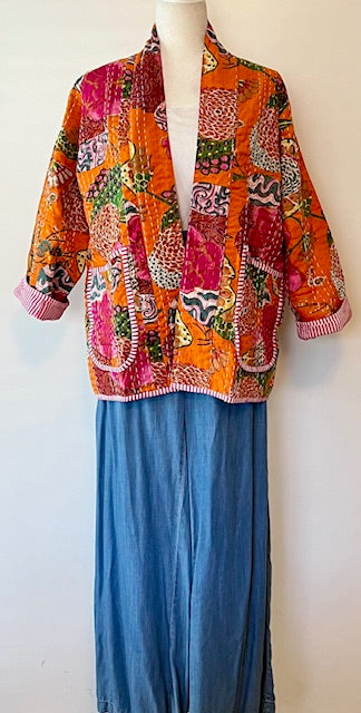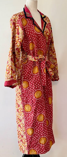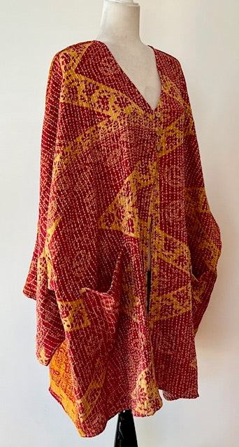 New Vintage Kantha Quilted Reversible Jacket, Red & Gold