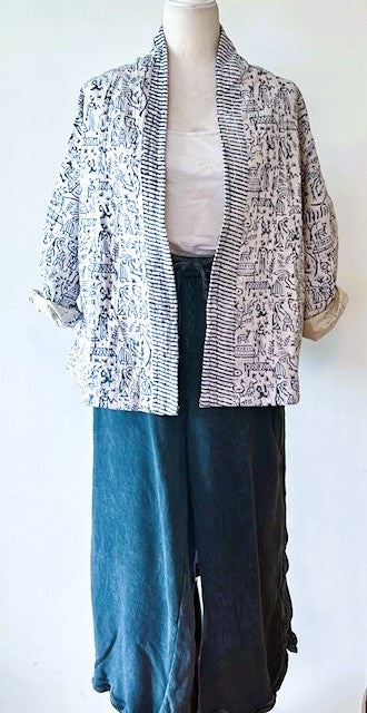 Short DesignerJacket In A Lively Graphic Print (Navy and White)