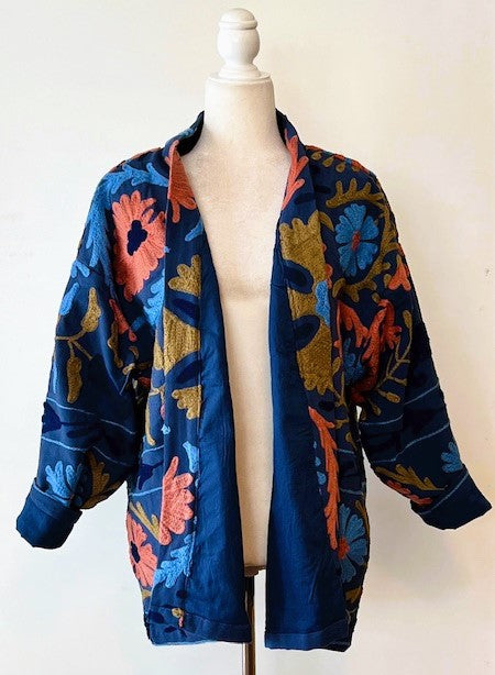 Stunning Suzani Kantha Quilt Short Jacket Is Colorful (Royal)