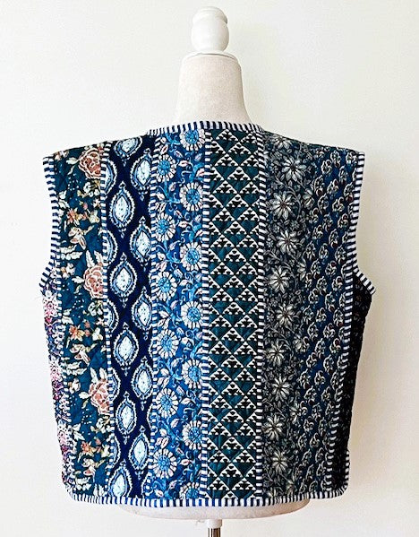 Designer Handmade Patchwork Vest In Navy. Fully Reversible Stripe.