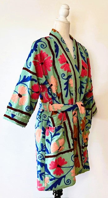 Stunning Suzani Kantha Quilt Short Jacket Is Colorful (Mint)