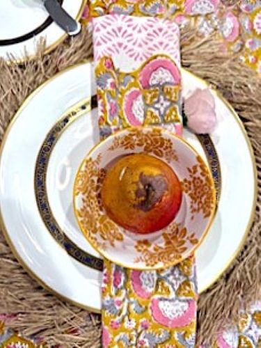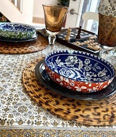 Table, Handmade Block Print Cotton Tablecloth: Complex Floral Print (60x90) (Fall Colors)